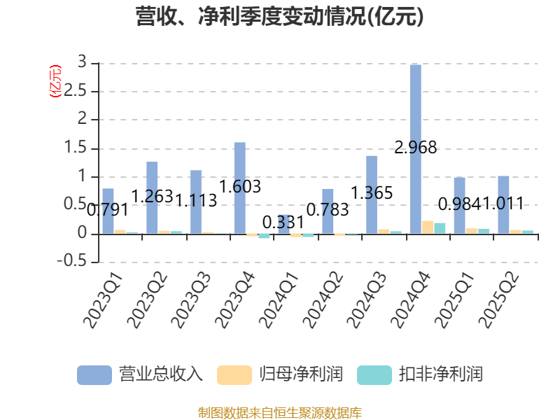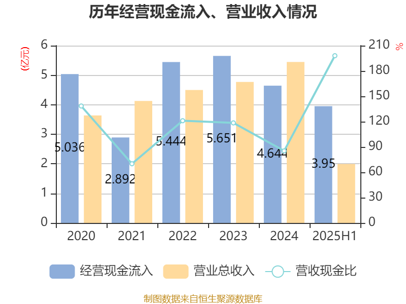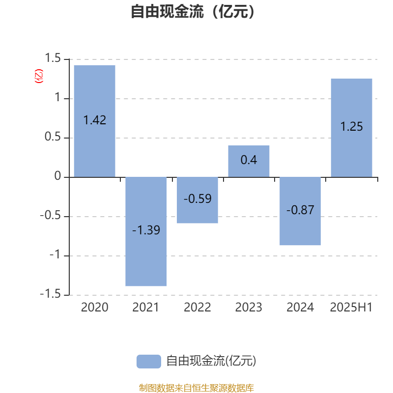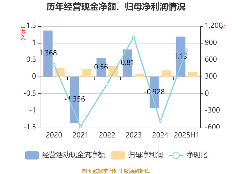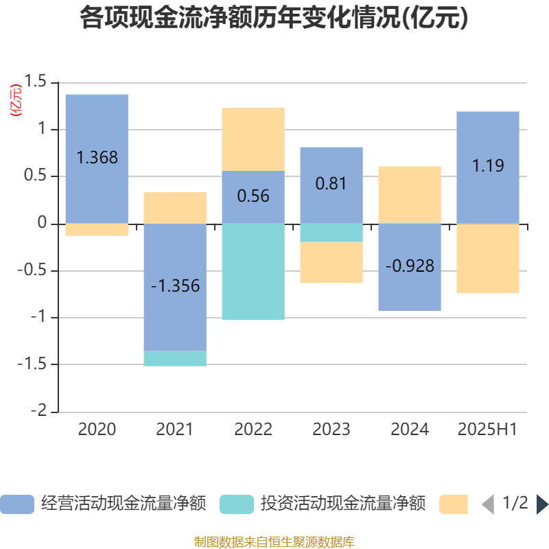 2025年上半年,公司贪图作为现款流净额为1.19亿元,同比增多1.72亿元;筹资作为现款流净额-7355.75万元,同比减少5163.33万元;投资作为现款流净额-39.5万元,上年同时为53.41万元。