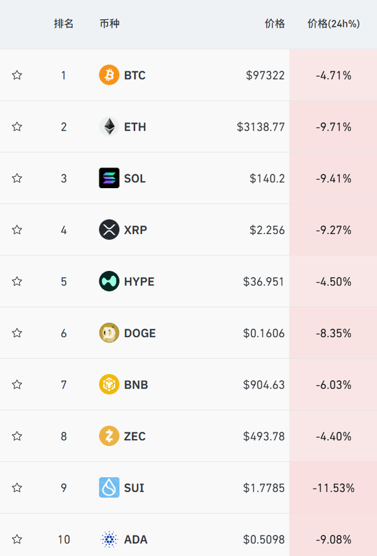 此外,索拉纳币、狗狗币、XRP、艾达币等主流币种,日内均有判辨跌幅。